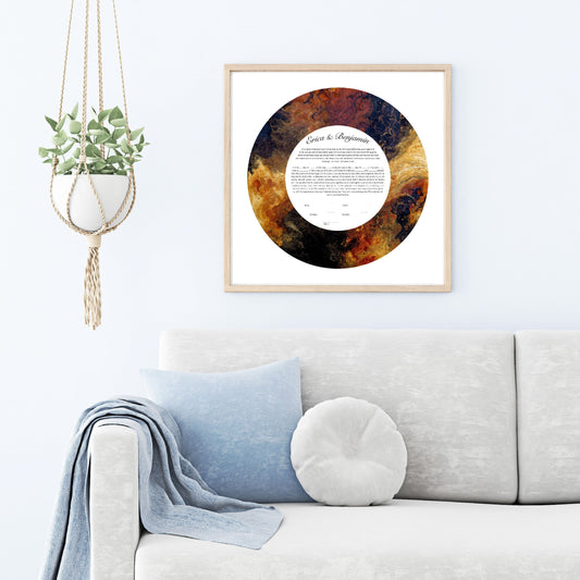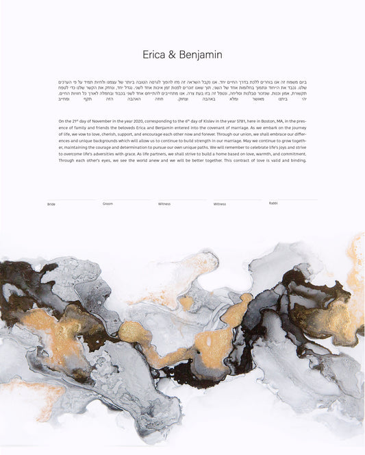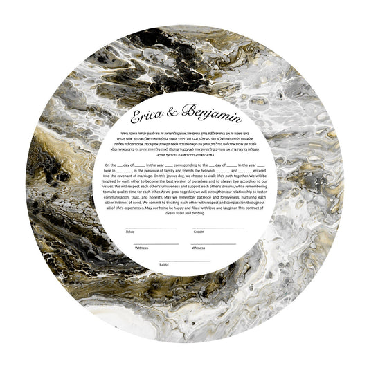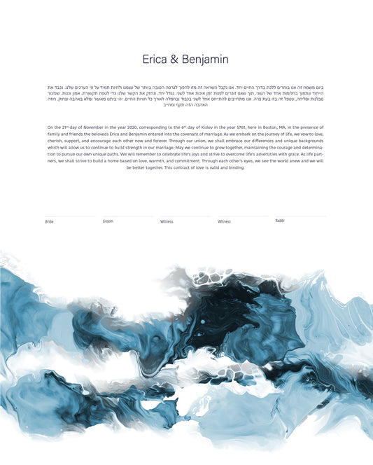 Our Acrylic Pour Ketubahs are inspired by the beauty of fluid art, where color and movement merge to create captivating, organic patterns. Each design symbolizes unity, emotion, and the blending of two lives into one. Perfect for couples seeking a bold, artistic statement, these colorful and abstract Ketubahs (also spelled Ketuba or Katuba) transform the traditional Jewish wedding contract into a modern work of art that’s truly one of a kind.
