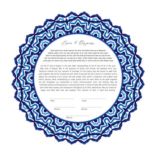 Discover the complete Maybie Ketubah collection — from modern Jewish wedding contracts to traditional designs and personalized artwork that beautifully celebrates your union. Each Ketubah is printed on archival fine-art paper and can be fully customized with your preferred Ketubah (also spelled Ketuba or Katuba) text, colors, and layout. Whether you’re planning a Reform, Orthodox, or interfaith wedding, our diverse range of Jewish wedding Ketubahs blends artistry, meaning, and love into a timeless keepsake.