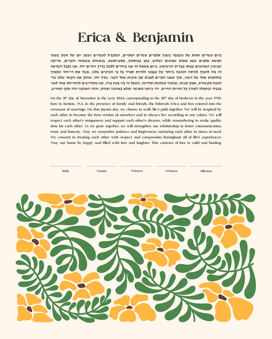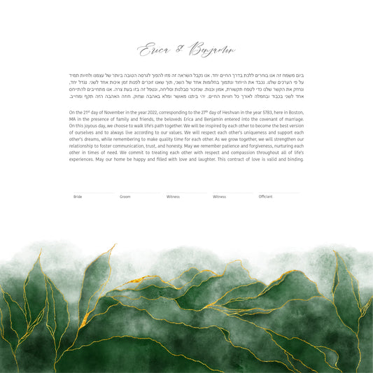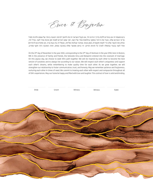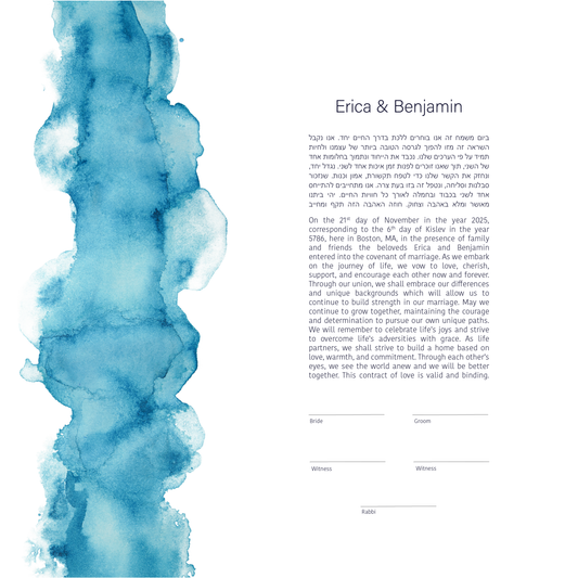 Discover the complete Maybie Ketubah collection — from modern Jewish wedding contracts to traditional designs and personalized artwork that beautifully celebrates your union. Each Ketubah is printed on archival fine-art paper and can be fully customized with your preferred Ketubah (also spelled Ketuba or Katuba) text, colors, and layout. Whether you’re planning a Reform, Orthodox, or interfaith wedding, our diverse range of Jewish wedding Ketubahs blends artistry, meaning, and love into a timeless keepsake.