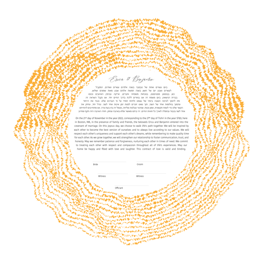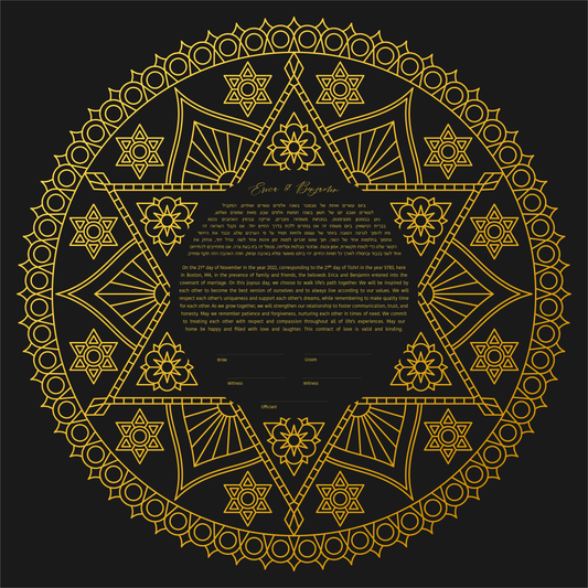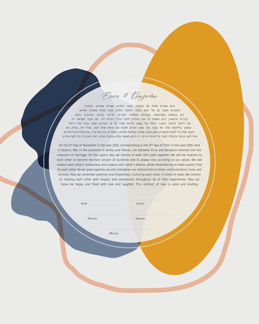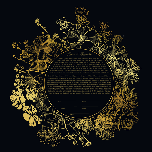 Discover the complete Maybie Ketubah collection — from modern Jewish wedding contracts to traditional designs and personalized artwork that beautifully celebrates your union. Each Ketubah is printed on archival fine-art paper and can be fully customized with your preferred Ketubah (also spelled Ketuba or Katuba) text, colors, and layout. Whether you’re planning a Reform, Orthodox, or interfaith wedding, our diverse range of Jewish wedding Ketubahs blends artistry, meaning, and love into a timeless keepsake.