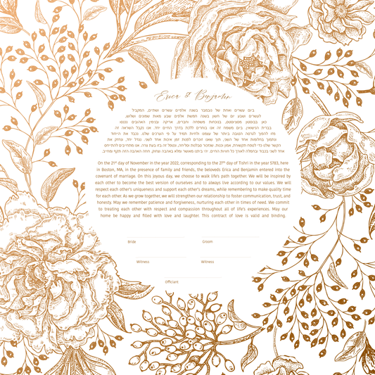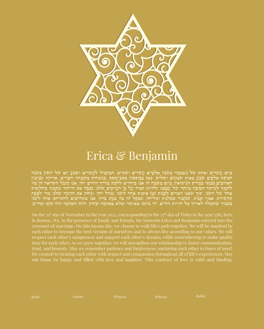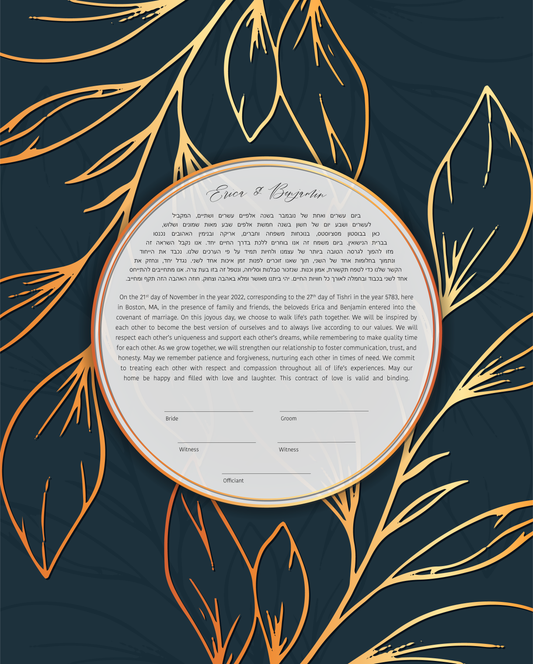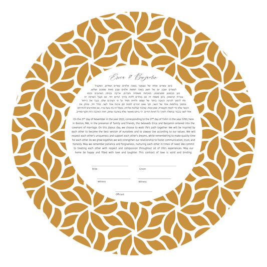 Every ketubah can be customized with our default text or your your fully custom text well suited to Orthodox, Reform, Interfaith, or Secular couples, ensuring your ketubah reflects your unique love story and wedding ceremony.