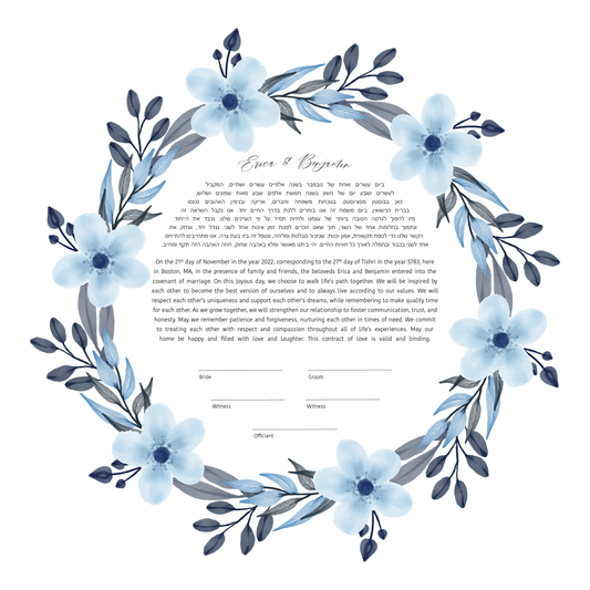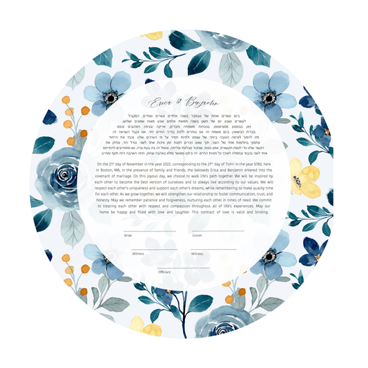 Celebrate love’s natural beauty with our Floral and Nature Ketubahs. From lush botanical designs to serene landscapes, each piece is inspired by the elegance and vitality of the natural world. Perfect for outdoor weddings or nature-loving couples, these Jewish wedding Ketubahs (also spelled Ketuba or Katuba) embody growth, renewal, and harmony—timeless symbols of marriage, connection, and creation.