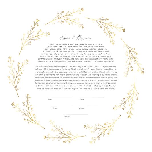 Celebrate love’s natural beauty with our Floral and Nature Ketubahs. From lush botanical designs to serene landscapes, each piece is inspired by the elegance and vitality of the natural world. Perfect for outdoor weddings or nature-loving couples, these Jewish wedding Ketubahs (also spelled Ketuba or Katuba) embody growth, renewal, and harmony—timeless symbols of marriage, connection, and creation.