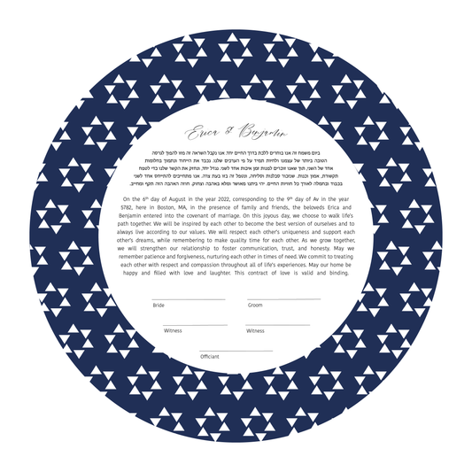 Rooted in faith and artistry, our Judaic Ketubahs honor Jewish tradition through sacred symbolism such as the Tree of Life, the Star of David, and intricate geometric patterns. Each design blends heritage with modern aesthetics, creating a traditional Jewish wedding Ketubah (also spelled Ketuba or Katuba) that feels both timeless and contemporary. Celebrate your union with a meaningful work of art that reflects your love, your faith, and your shared history.