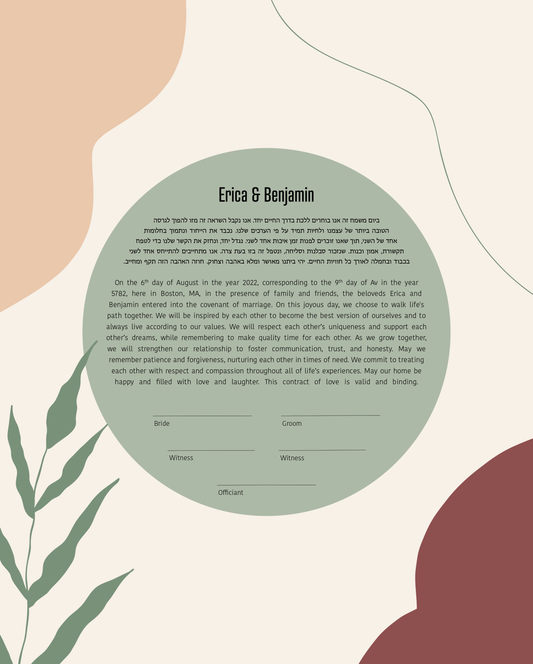 Make your Ketubah a true statement piece with our Modern Art Ketubah collection. These contemporary designs reimagine the Jewish wedding contract as fine art, featuring bold abstract forms, expressive brushwork, and rich textures. Each modern Ketubah (also spelled Ketuba or Katuba) blends creativity and tradition, offering a meaningful way to celebrate your marriage through color, movement, and modern design.
